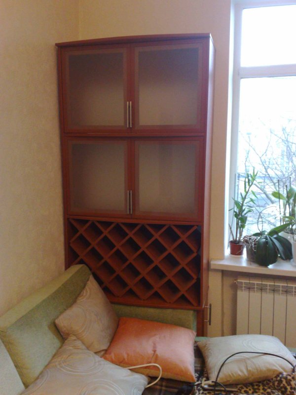 Соседство с диванчиком от безвыходности, больше негде было этот бар строить. Место там было микроскопическое за диваном, а сколько бутылок влезло аж неверится, и еще есть свободное пространство.