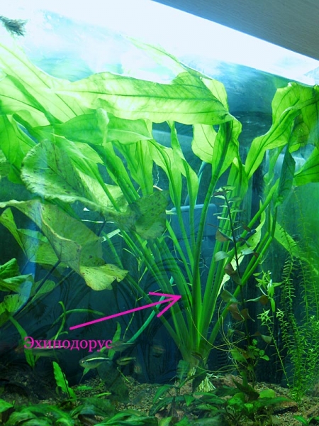 Вымахал в моем аквасе эхинодорус Блехера (Большая Амазонка) http://goldfishes.ru/index.php?name=New ... le&sid=124 - большой шикарно-зеленый куст (листьев 20 на длинных черешках), не помещается. Красивое растение, только для аквариума от 400 л.