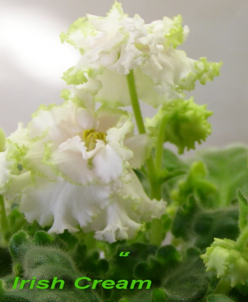 Сенполия Irish Cream (S. Sorano) Double cream-white pansy/bright green ruffled edge. Medium green, ruffled. Standard