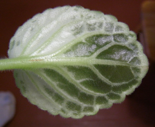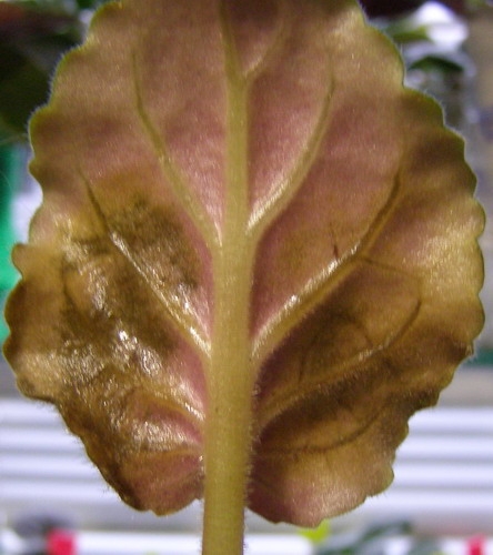 Но на нижней полке стеллажа таких листьев было много (этот куст пострадал сильнее всего). Пришлось его пересадить, а полку затянуть пленкой.