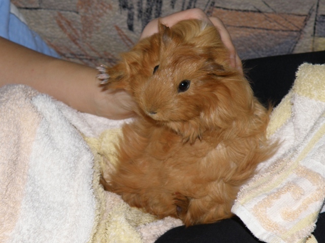 С новосельем вас!Natalja писал(а):все. покупала, высушила, расчесала и запустили в новую клетку. а она..шурх в домик и сидит. схватила гарбузик и в домик.такая пушистая!!!бландинка.. вся в меня.
