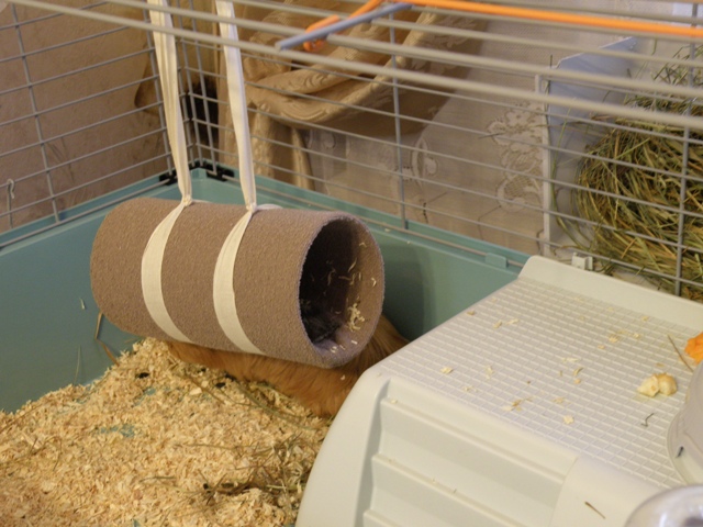 она теперь все время в домике сидит.. вылезет.. покушает и назад. клетка канешна... огромная.