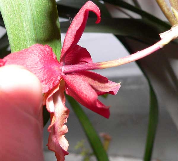 И еще один цветок опылил по способу Мичурина, собственной поллинией колмонарии, и поллинией цимбидиума, так можно обмануть материнское растение, которое вырастит и собственные и гибридные семена, но это в теории.