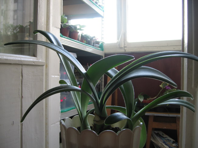 Я тоже на такое засмотрелась, бабка продавала, назвала "олений язык". В и-нете поискала-гемантус. Так поняла, что белоцветковый - решила не покупать. хотя может и не белоцветковый, так как бабка сказала, что цветет розовым.