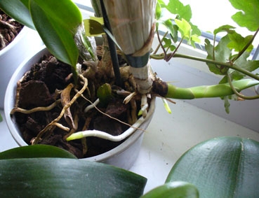 Если к горшку прикрепить досточку, а на нее закрепить сфагнум, кокосовое волокно и уже к этой "мохнатой" стойке, проволокой подтянуть растюху. На мой взгляд, и держаться лучше будет, и дополнительная влага корешкам. Что скажите?