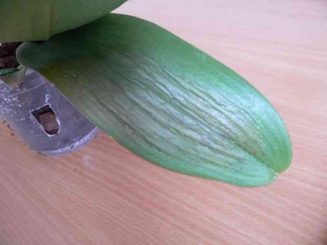 Проблема вот в чем. Фаленопсис был подарен в начале июня (никогда раньше орхидеи у меня не жили и опыта соответственно никакого). Куплен кстати в Эдельвейсе. Корни с самого начала были не ахти какие, т.е. с черными пятнами. Поливала раз в пять дней (сейчас понимаю что это слишком часто), расположен в метре от окна, вечером досветка лампой. Со временем пятна появились почти на всех корнях, плюс я разглядела в почве совсем крошечных (меньше миллиметра) белых жучков (не прыгающих). Растение росло не в коре, а в полусгнившем сфагнуме, который давным-давно надо бы поменять и вообще фалик посадить в кору. Но он ведь активно цвел! Не хотела пересаживать в период цветения. За две с лишним недели, которые он у меня находится распустил три цветка. Я его полила биофунгицидом (погрузила весь горшок в раствор на 15 минут плюс полила сверху) и больше не поливала. Так я хотела избавиться от жучков. Сейчас я понимаю что надо было протравить не фунгицидом, а инсектицидом. От жучков я , понятное дело , не избавилась и решилась все-таки его пересадить в кору. Вывалила его, промыла корешки, половину пришлось убрать (гнильё) , срезы обработала зеленкой . Ночь он у меня просыхал. Утром посадила и не поливала, только чуть-чуть на кору брызгала. Фундазола не было чтоб потрусить на корни, не нашла. В течении следущего дня пожелтели 2 нижних листа и я их отрезала. На другой день увидела что на большом листе появилось большое пятно, не мокрое и не сухое (см. фото).Там где пятно листик сморщился. Что с ним делать не знаю.