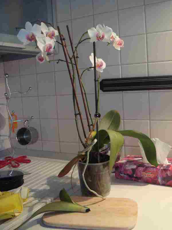 Его ведь ещё можно спасти? Осталось два здоровых листа, три!!! цветоноса (правда, два из них подсыхают - один проклюнулся в декабре – 10-12 см и подсыхает сейчас, и ещё один с цветочками подсыхает, что делать?) и много-много зелёненьких жирненьких корней… Я осмотрела часть от которой отвалился кусочек, она темноватая, но вроде бы не мокрая, возможно, подсохла… НО ТУТ я совершила, видимо, ошибку…