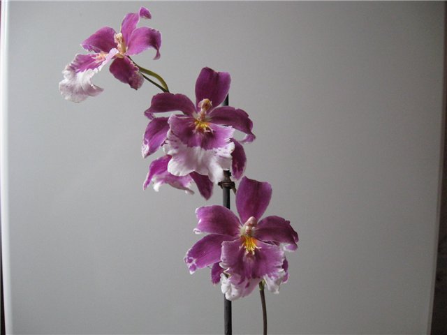 Fila,ваша камбрия называется мильтонидиум (она еще должна сильно пахнуть). У меня была точно такая жеFila писал(а):Вот так она цвела. Мне цвет вашей больше нравится. Буду искать себе сиреневую тоже.