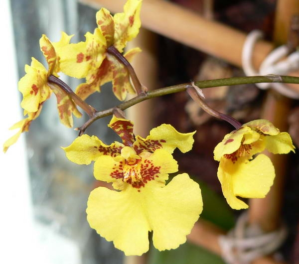 Хотел написать о живучести цветоносов этой орхидеи. Цветонос появился 4 месяца назад, набрал цветы за месяц, и при поливе я отломил его, вырос новый из предшевствовавшей почки, и засох, и потом активно пошла в рост еще одна спящая почка, вот она и цветет. Какая была сильная тяга к цветению у орхидеи.