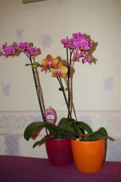 а тот, что стоит первым - бардовенький. Именно его я за 30 гр взяла. А сиреневенький был немного пересушен. 2 бутона отпало, но зато вторая стрелка лезет. А это все семейство вместе: