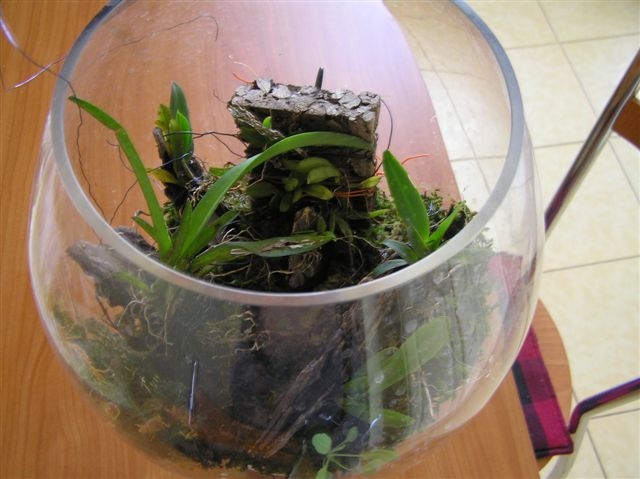Comparettia macroplectron This is a miniature plant mounted on a small piece of tree fern. . Pseudobulbs are almost undetectable, and the leaves are about 3" (7.5 cm) long. The lip of the flower is about 1-1/2" (3.5 cm) wide, and the flowers have a long spur.