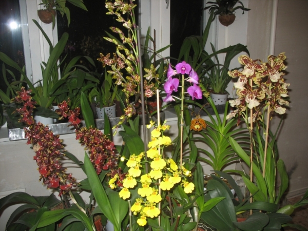 Зимой света, конечно, меньше, многие орхи отдыхают. Те, что растят росты или цветоносы - перезжают на подоконник или балкон.