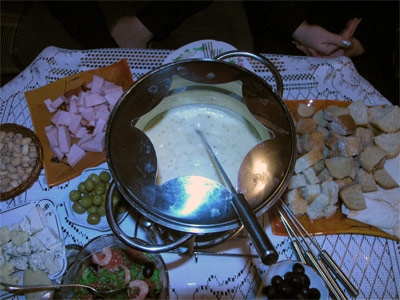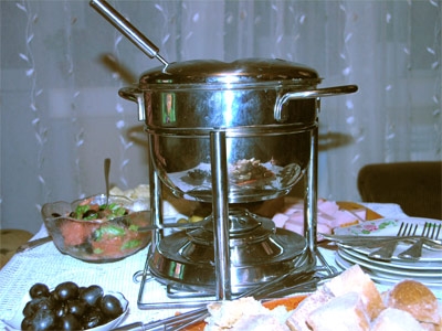Я как любительнитца сыров в разных проявлениях, просто влюбилась в это блюдо, запах просто умопомрачительный, макали туда всё оливки, хлеб, мясо. Потом готовила сладкое фондю сначала с чёрным, потом с белым шоколадом.