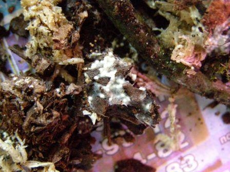 То что бегает..прячется быстро..и фотыком не могу..слишком мелкое...сегодня вытянула из горшка..и вот что увидела..плесеньь. и корни по-моему..того..гниют..горшок стоял в кашпо..может воздуха мало и не проветривается хорошо? листья стали ватными..надо срочно спасать пациента..а еще пару дней назад все было нормально..быстро теряю...