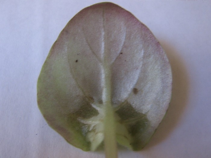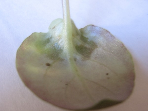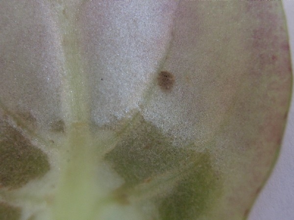 Это было на одной фиалке: листик такой дефективный и с пятнами.