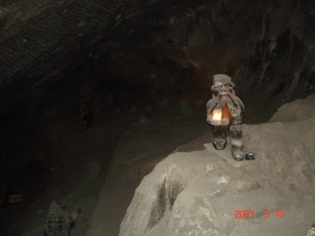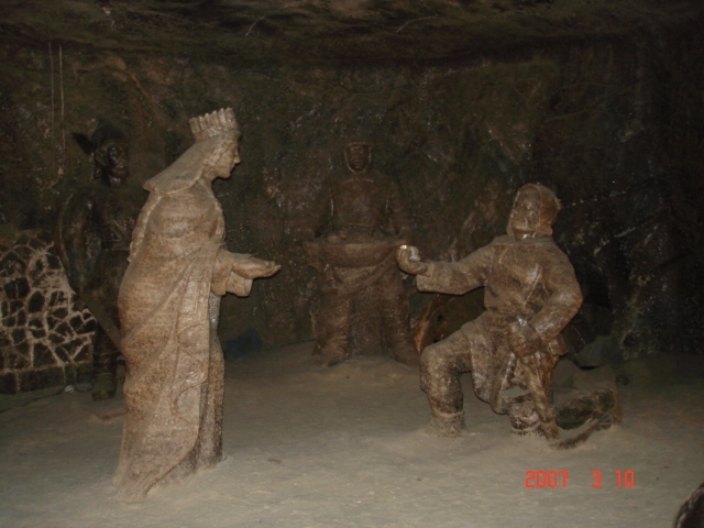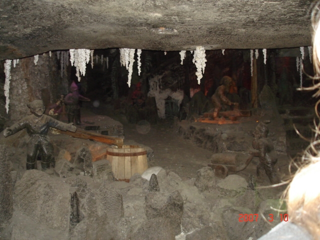 А еще мы были в городе Величка, под Краковом. Там музей в соляной шахте. Все сделано из соли. Ну, стены - понятно. В некоторых помещениях на полу - плитка из соли. Еще есть огромная подземная церковь с барельефами и скульптурами из соли. В других пещерах - тоже много скульптур из соли и даже - люстры
