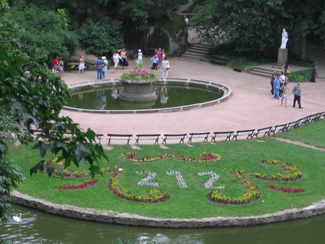 Над фонтаном "Семиструйка" своеобразный "лабиринтик". Дорожки выложены ромбами. По прямой не пройдешь сверху вниз. Но так еще прикольнее