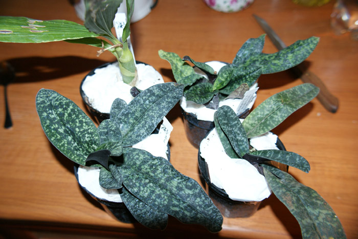 А вот мои красавчики. Очень порадовал пафик - BELLATULUM X DELENATII, три розетки, одна с остатком цветоноса. DELENATII X MICRANTHUM - совсем крошка, одна розетка.SOPHROCATTLEYA BATEMANIA HAWAII - восемь бульб, несколько остатков цветоносов,растение очень компактное.