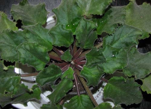 По всей видимости был залит центр розетки и загнил. Корни целые и пара листьев уцелела. Пару дней назад все было нормально. А через пару дней была бы сухая розетка. Вот такая история. Я не углядела вовремя. Не знаю спасу ли я розетку с парой листьев. Но для себя делаю вывод, что нельзя поливать воду на точку роста. Даже если нет времени, даже если в комнате жарко (25-27). Сто раз пройдет, а на сто первый какая-нибудь фиалка может пропасть.