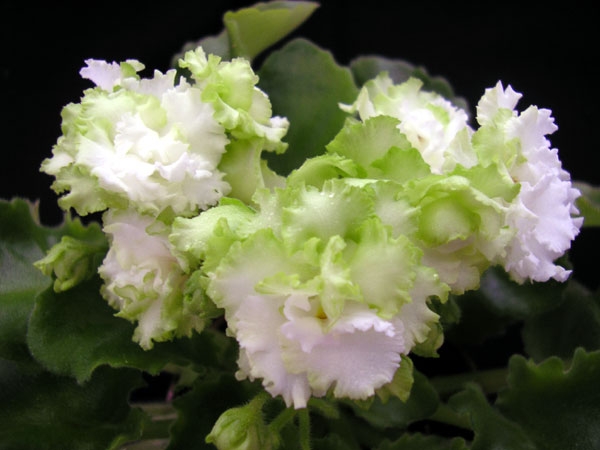 Фиалки, стрепсы и розы с зелёными кружевами.