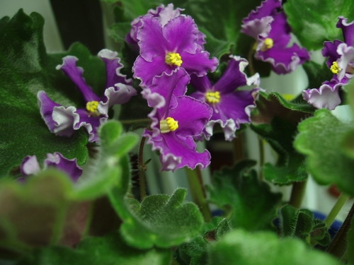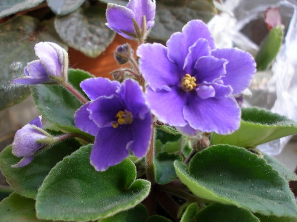 Теперь о стеллаже - фиалки там еще не зимовали, хватало и подоконников, а массовое накопление коллекции началось примерно в феврале. Батереи выбирали сами, чугунные, но вторую зиму у нас так жутко топят, что они "как пятки у покойника". Думаю к зиме установить там лампы, т.к. свет загораживает правая боковина. А сейчас им там нравится