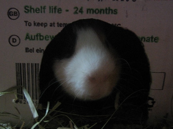 Коту скучно дома. Он пристает к Мишке, чтобы поиграться. То с одной стороны посидит, то с другой, то прямо в дырку пытается заглянуть. Уже и сверху лазил, лапой по крыше тыкал-стучал. Типа вызывает Михасыка: "Выходи, поиграем!" А Мишка только морду чуть-чуть показывает, вроде дразнится. Смоки уже и в сам террариум влазил, а Мишка сидит себе в домике и в ус не дует. Котик и в кормушку свинскую влез и вокруг потоптался. Свин не реагирует. И тогда Смоки совершил ошибку. Он попытался засунуть лапу вовнутрь домика. Вот тут я очень пожалела, что у меня нет кинокамеры. События развивались так стремительно, что фотоаппарат не справлялся с задачей. Некоторые фото получились совсем смазанными. Так что попрошу поверить мне на слово.