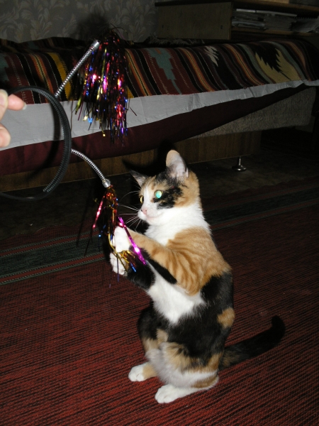 Ей тогда было полгода, был конец осени. Я как обычно прихожу домой (было уже темно, поэтому меня на остановке встречал муж). Мы пришли, переоделись, покушали и сели смотреть какой-то сериал. И вдруг я вспоминаю, что ещё не видела свою кошечку. Давай её искать по всей квартире. А она любитель залезть во всякие дырочки и сидеть там тихо, но когда потрясти пачкой корма, она всегда прибегала, плюс ко всему она очень любит, если открыто окно или балкон, сидеть на краешке карниза или на периле балкона, а мы живём на 8-ом этаже (я, когда это видела, у меня сердце в пятки уходило). Я начала трясти этим кормом - не бежит. Тут меня осенило - у нас открыты окно на кухне и балкон