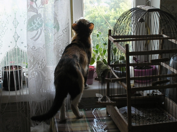 А относительно ловли птичек - пришлось выделить на подоконнике часть "кошачьего" места - я не пртендую на его смотровую площадку, он - на мои горшки с цветуёчками...