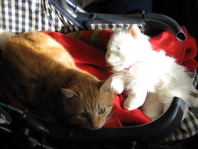 Вообще кот- нянька. Когда дочка была малышка, никогда не оставлял ее саму в комнате- охранял. Научил ползать за ним. А младшего сына принял за своего хозяина. Позволял ему все. Ну у меня дети добрые- в глаза животным не тыкают и ногами не пинают.