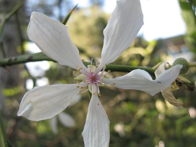 На днях была в Артеке. Жёлтая Роза цветёт всё лето огромными цветами. Какое-то растение, ствол напоминает Шиповник, а вот цветок?- Всё равно красиво! Кустарник весь покрыт белыми цветами! и пахнет! У нас его называют -"кашка" (естественно это не научное название