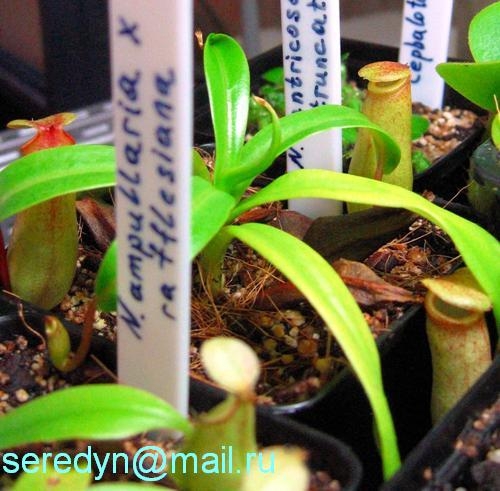 N. ampullaria, N. rafflesiana, N. ampullaria x rafflesiana, N. truncata и N. truncata x ventricosa. Все оказались довольно пластичны и уже с новыми кувшинами: