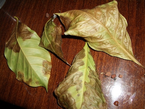 Болезни и вредители. Кофейное дерево при комнатном содержании гораздо меньше поражается болезнями и вредителями, чем другие плодовые культуры, выращиваемые в тех же условиях. Чаще всего неблагоприятное содержание кофейного дерева проявляется в так называемом некрозе листьев. У больных растений листовые пластинки и их края окрашиваются в буро-желтый цвет с образованием некротических пятен. Причина поражения — не вирусы или вредные насекомые, а ошибки садовода, нарушение агротехники культуры.