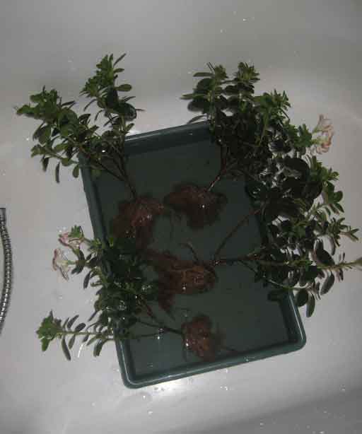 Аленушка, а ты чем-то припудрила корешки? Они ж в процессе промывки повредились? Сейчас азалии нужна хорошая влажность воздуха. Но не факт, что все оклемаются после такой процедуры.