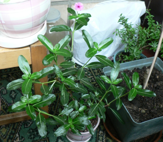 Вот так зацвел вышеупоминаемый катарантус (пока только один несчастненький цветочек, но много бутончиков)