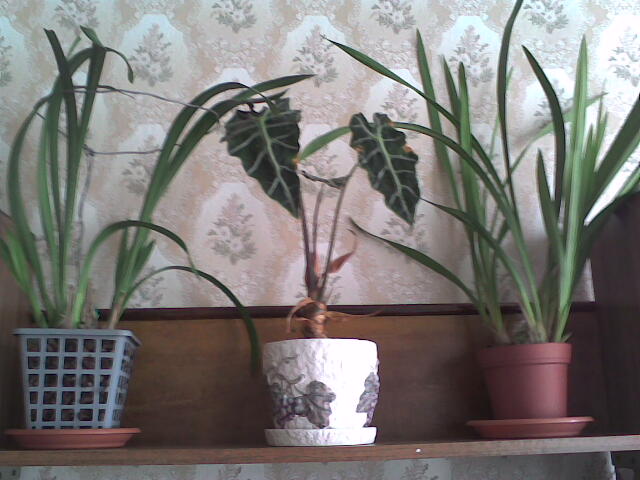 А на работе у меня: красный гибискус , 3 папоротника , 2 сциндапсуса, клеродендрум, плющ, хлорофитум зеленый, традисканция, бегония, антуриум и 6 штук фиалочек. Это все в одном кабинете. Обожаю цветы!