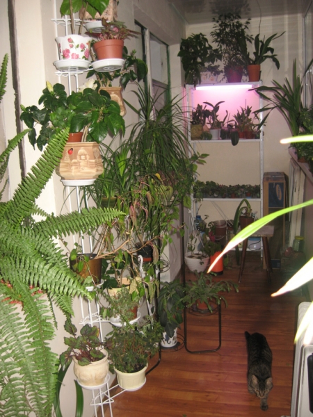 zlatochka, спасибо! Застеклен пластиком, однокамерный стеклопакет. Болконная стена и пол утеплены 5 сантиметровым пенопластом. Стены 3 сантиметровым. Все орхи подсветила лампой Osram Fluora 77. На противоположной стороне еще 2 лампы. Обогрев у нас двойной. Батареи в квартире греют не слабо. Мы выняли окна и двери. Получилось единое пространство. Если будет совсем холодно и тепла от батарей будет нехватать - включим радиатор.