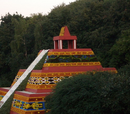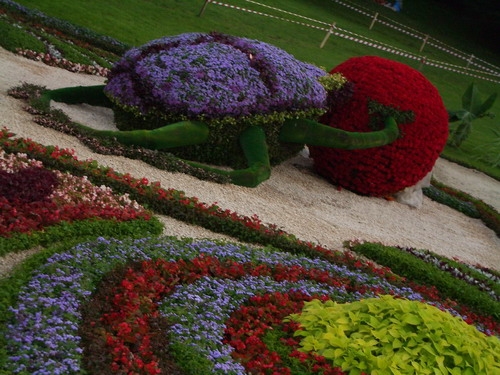 А меня больше всего впечатлили и порадовали бонсаи. Их привезли из Никополя. Это новое. В технике бонсаи были представлены карликовый гранат, можевельник, вяз, мирт, сосны и карликовая ель. Был один фикус. В основном садовые бонсаи, среднего размера (в магазинах обычно миниатюрные). Особенно понравился бонсаи гранат с плодами, склонившийся над белым камнем, и сосна на скале и с живучкой. Деревца стояли на краю склона и очень красиво смотрелись и с верхней, и с нижней терасс.[/quote]