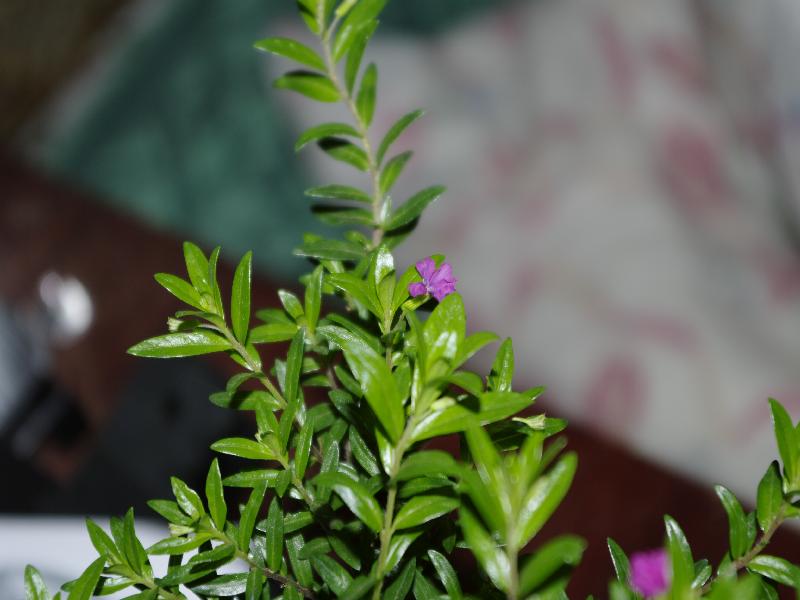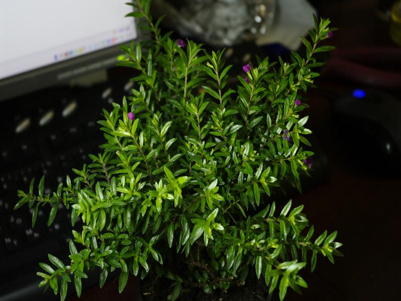 Это не мирт! Продавец обозвал растюху неправильно (гипоцирт или гипсофила),но она для открытого грунта. И цветочки только начинают цвести - там уйма бутонов. Что интересно, есть молодая растущая веточка снизу, так там листики растут покрупнее. Ничем не пахнет, веточки коричневые, как у хвойных.