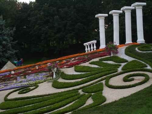 А меня больше всего впечатлили и порадовали бонсаи. Их привезли из Никополя. Это новое. В технике бонсаи были представлены карликовый гранат, можевельник, вяз, мирт, сосны и карликовая ель. Был один фикус. В основном садовые бонсаи, среднего размера (в магазинах обычно миниатюрные). Особенно понравился бонсаи гранат с плодами, склонившийся над белым камнем, и сосна на скале и с живучкой. Деревца стояли на краю склона и очень красиво смотрелись и с верхней, и с нижней терасс.[/quote]