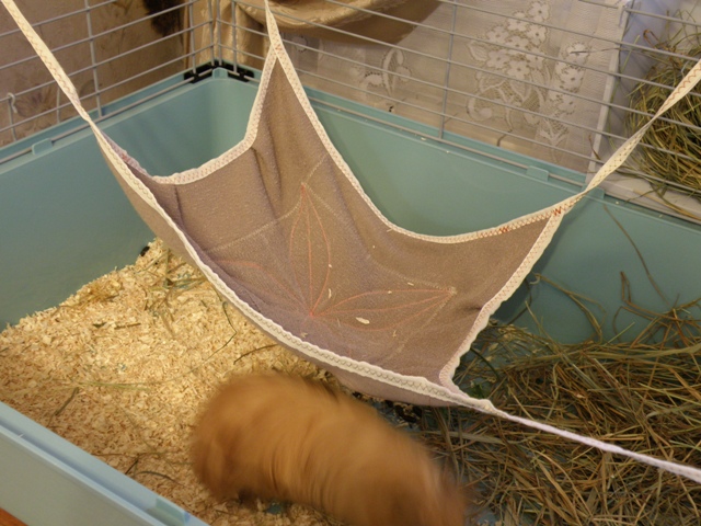 а вот новый гамачок.. тока мы не хотим в нем сидеть..домик ищем.. в сено зарываемся..