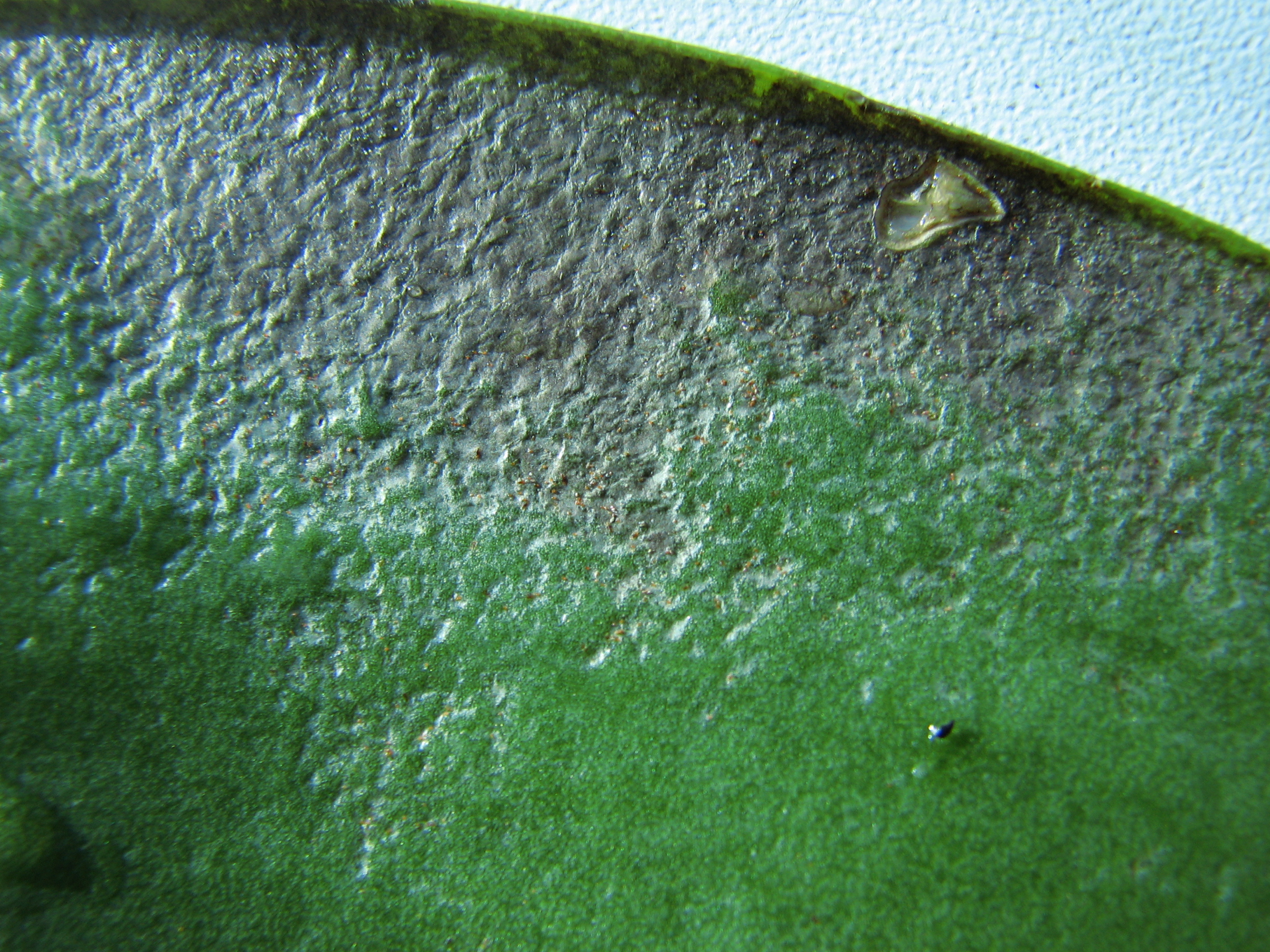 На фоне этих тропинок видны красные микроскопические точечки. То ли это вредитель, то ли какое-то проявление болезни.