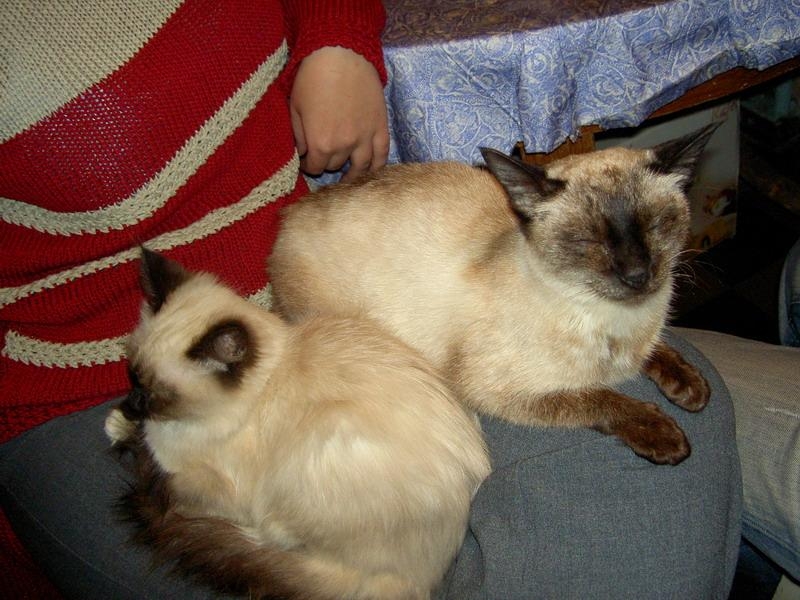 Ну Мисюсей нашей я уже хвасталась. И вот с пятницы у нас пополнение. На сайте помощи бездомным животным увидела я кошку. ПО окраске - как наша. Найдена была где-то под кучей строительного мусора. Вобщем, днем я эту тему почитала на форуме у них, а вечером мы уже принесли кошу...
