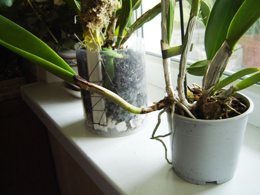 Садите таким образом, чтобы каттлея была задней бульбой максимально близко к стенке горшка. И еще идею подкину-раскаленным паяльником проделываете 4 дырки, как советовала Юлия, только не проволочку протягиваете, а тонкие деревянные палочки ( я с успехом использую деревянные шпажки для шашлыка-стоят копейки, а в упаковке их ну очень много, уж второой год не кончаются). И еще момент-ризома должна быть паралльльна субстрату-и пусть не смущают наклоненные бульбы-новый рост будет расти перпендикулярно уровню субстрата.