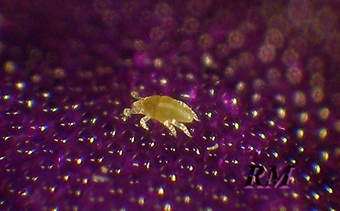 Эти клещи могут жить в пыльниках. Иногда это сбивает с толку многих фиалочников , и они травят безуспешно трипса. :mrgreen: