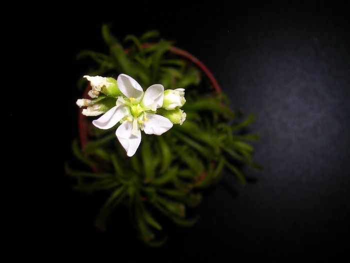 Немного фоток Росянок. Это Drosera nitidula x pulchella из группы Pygmy Sundews. Очень миниатюрна: всего 2-3 см в диаметре. Со временем заполняет весь горшок сплошным ковром. Очень красиво смотрится в террариуме (флорариуме) У меня живёт просто в комнате зимой и на балконе летом. Цветы в диаметре почти 1,5 см на невысоком цветоносе. Очень лёгкое растение в содержании: