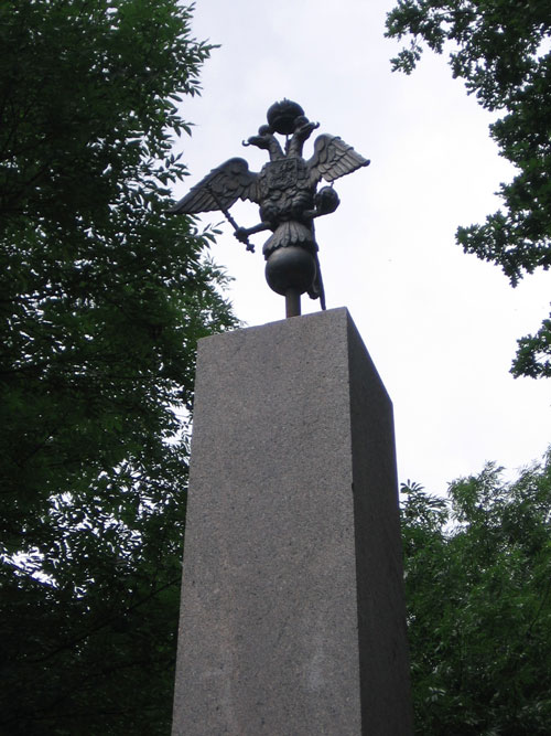 На этой стелле после революции (октябрьской 1917г) орла сняли.К двухсотлетю парка восстановили.