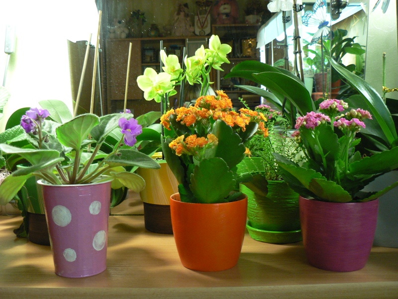 Нет, акварель и гуашь размазались бы - надо же и переставлять, и мыть время от времени. Я красила акриловыми по стеклу и керамике, хотя горшки пластиковые.